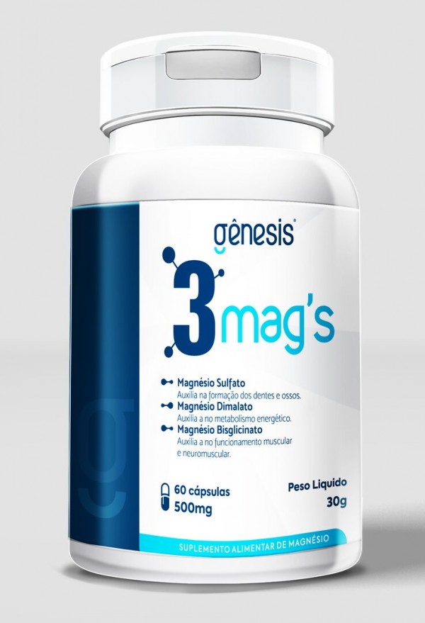 Suplemento com 3 formas de magnésio em cápsulas para sua saúde.